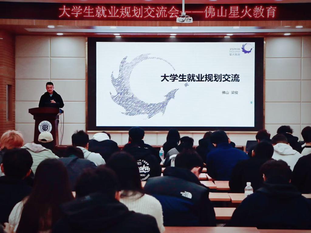 活动在宋佳玮副院长的热情欢迎辞中正式启幕。他首先对梁俊老师及在座的师生表达了诚挚的欢迎,并指出当前就业市场的形势与求职技巧是学生们普遍关注的焦点。为了帮助学生们更好地应对就业挑战,学院特别邀请了经验丰富的梁俊老师来院分享。同时,宋副院长还简要介绍了星火教育在国内教育行业的领先地位,以及其在佛山地区因卓越的教学质量、专业的教师团队和贴心的服务而广受赞誉的情况。