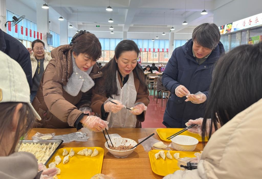 活动现场氛围温馨融洽,师生围坐开展包饺子比赛,众人分工协作、各展所长,一盘盘造型别致的饺子快速成型;饺子烹煮后,师生共同品尝劳动成果,共享团圆蛋糕。交流环节中,王珺书记与师生亲切交谈,细致询问同学们的宿舍生活起居、学业发展规划、专业技能研习及未来就业意向等情况,句句关切尽显对青年学子成长的重视。她还与学生网格员展开深度交流,认真倾听大家在日常履职过程中遇到的实际困难,悉心了解同学们在搭建师生沟通桥梁过程中的感悟与体会。针对同学们提出的合理诉求,王书记当场作出回应,明确表示将对各类诉求分类梳理汇总、逐项协调推进反馈,以真抓实干的作风和务实有力的举措,切实为学生成长成才保驾护航,让师生真切感受到学校的关怀与温暖。