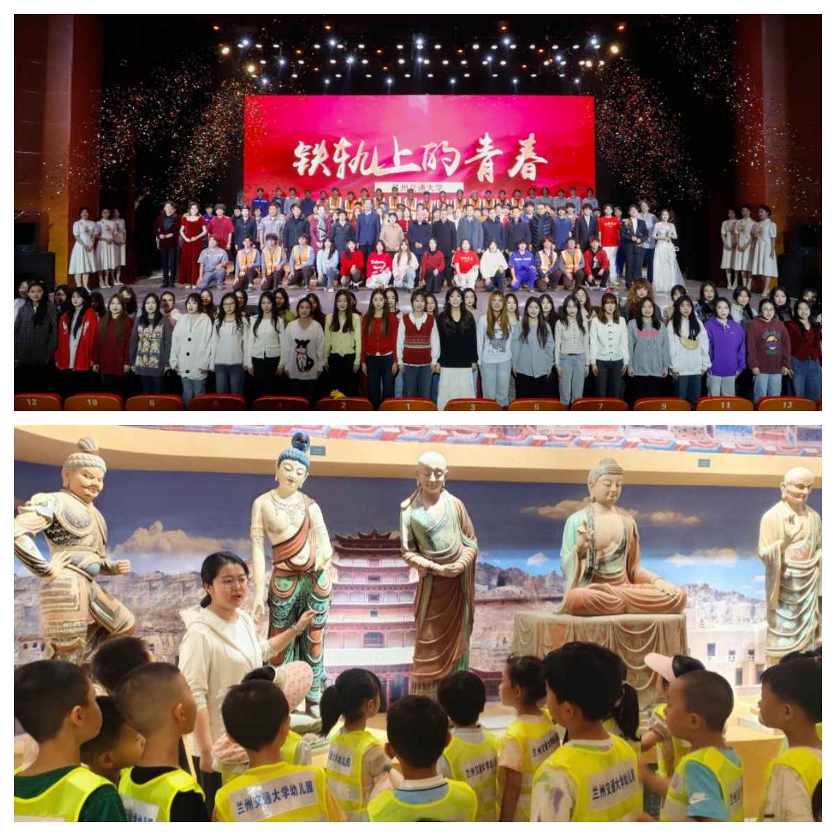 学院充分发挥专业优势,积极服务学校美育工作与校园文化建设。以天佑美术馆为阵地,积极策划引进高水平艺术展览共计40场,陶艺工坊面向全校开设劳动课程,首批吸引40位非艺术类学生参与。打造校园文化精品,完成《天佑精神》《铁轨上的青春》两部弘扬“天佑精神”的大型校园舞台剧。持续推进教育部“敦煌彩塑制作技艺”中华优秀传统文化传承基地建设,基地全年面向社区、中小学开放13次,每年辐射人群1500余人。通过美育平台建设,不仅提升了全校师生的艺术修养,也为学校“文化育人”贡献了艺术设计力量。