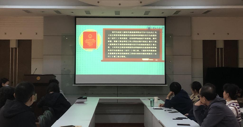 学院党委副书记、副院长宋佳玮带领全体教职工共同学习了《新时代高校教师职业行为十项准则》、教育部“六禁令”、高校教师师德禁行行为“红七条”。全体教职工观看学习了《兰州交通大学师德警示教育宣传片(高校版)》。引导教师把教书育人和自我修养结合起来,自觉做到以德立身、以德立学、以德施教、以德育德,维护教师职业形象,提振师道尊严。