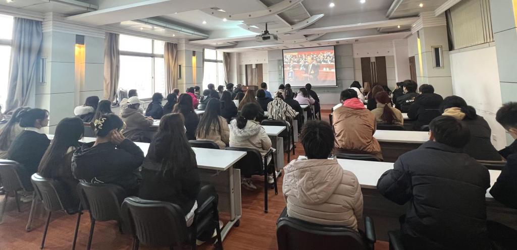 为进一步提高政治站位,迅速把思想和行动统一到全国两会特别是习近平总书记重要讲话精神上来,全面贯彻落实习近平新时代中国特色社会主义思想和党的二十大精神,3月5日上午,学院领导班子、师生党员代表在学术厅集中收看十四届全国人大二次会议开幕会。