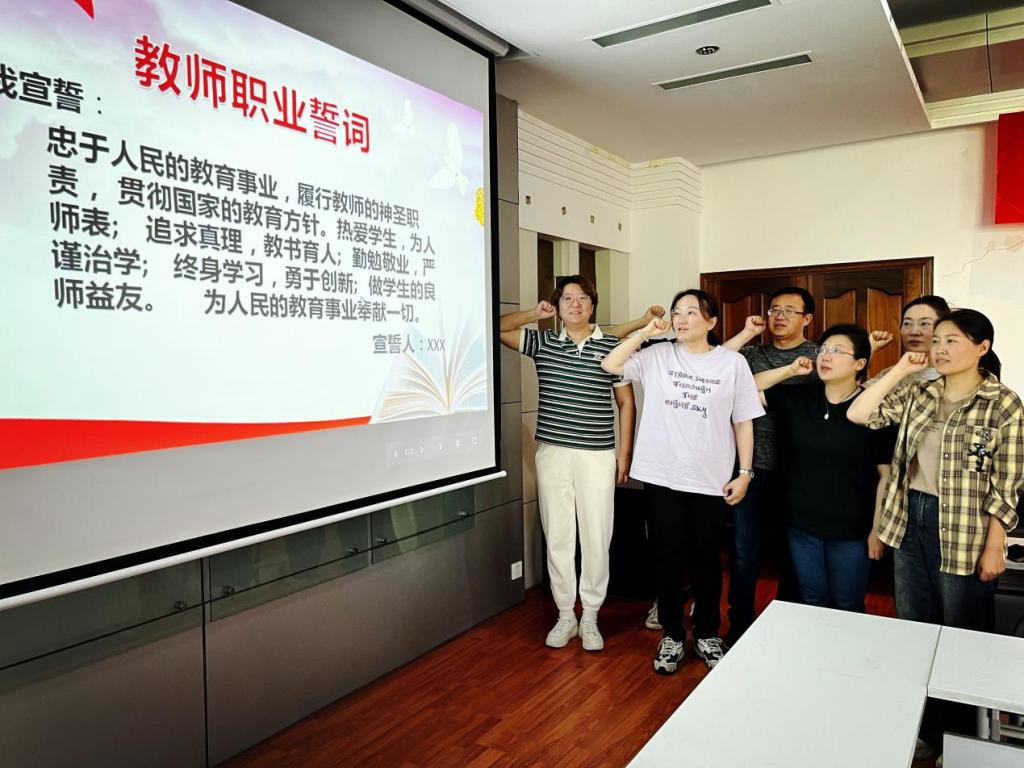 在随后的教师职业誓词宣读活动中,全体教师肃立,庄严宣读教师职业誓词,誓言忠诚党的教育事业,为人师表,立德树人,为学生的全面发展贡献自己的力量。宣读过程中,教师们神情庄重,声音洪亮,充分展现了新时代教师的良好风貌。