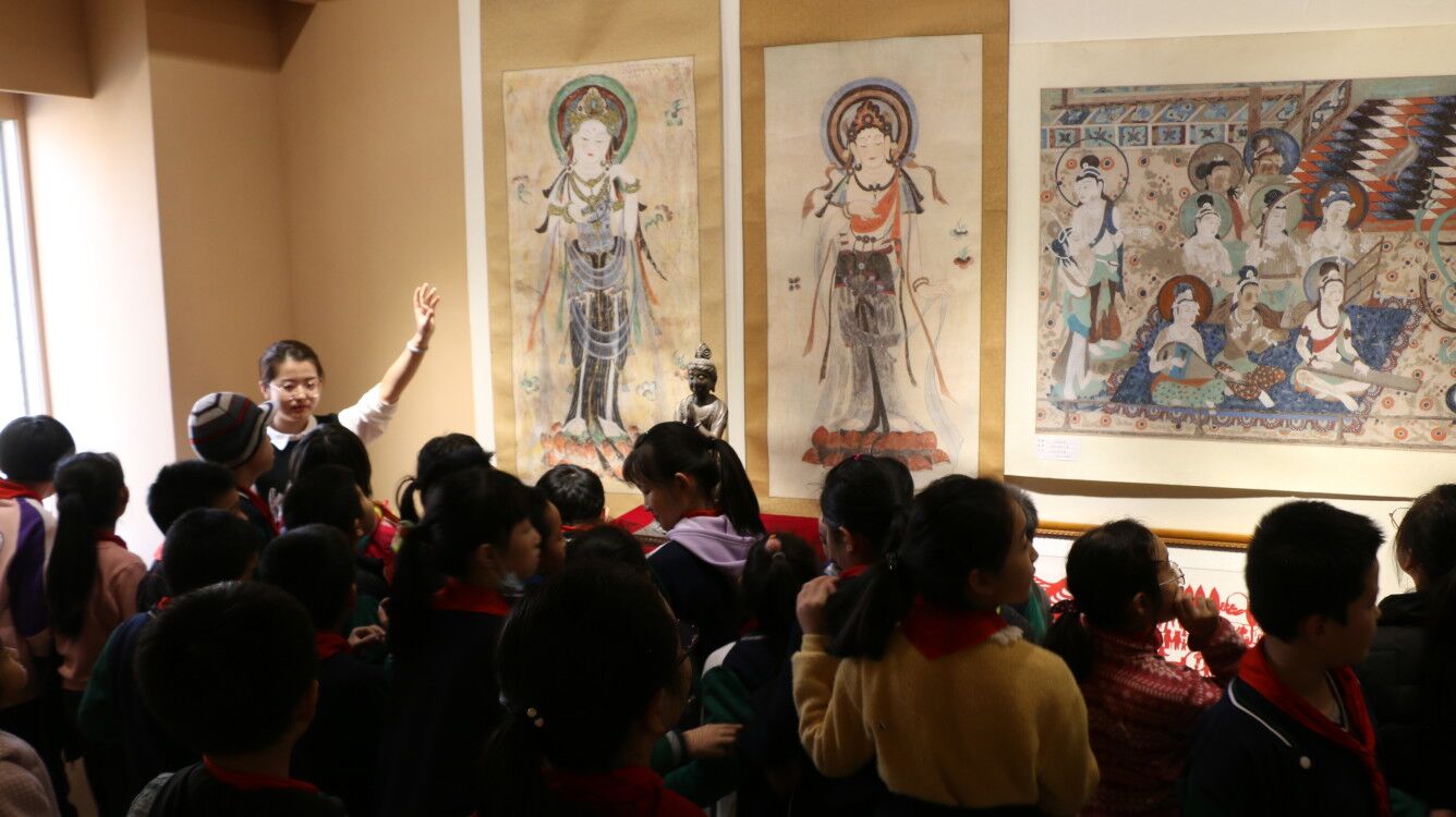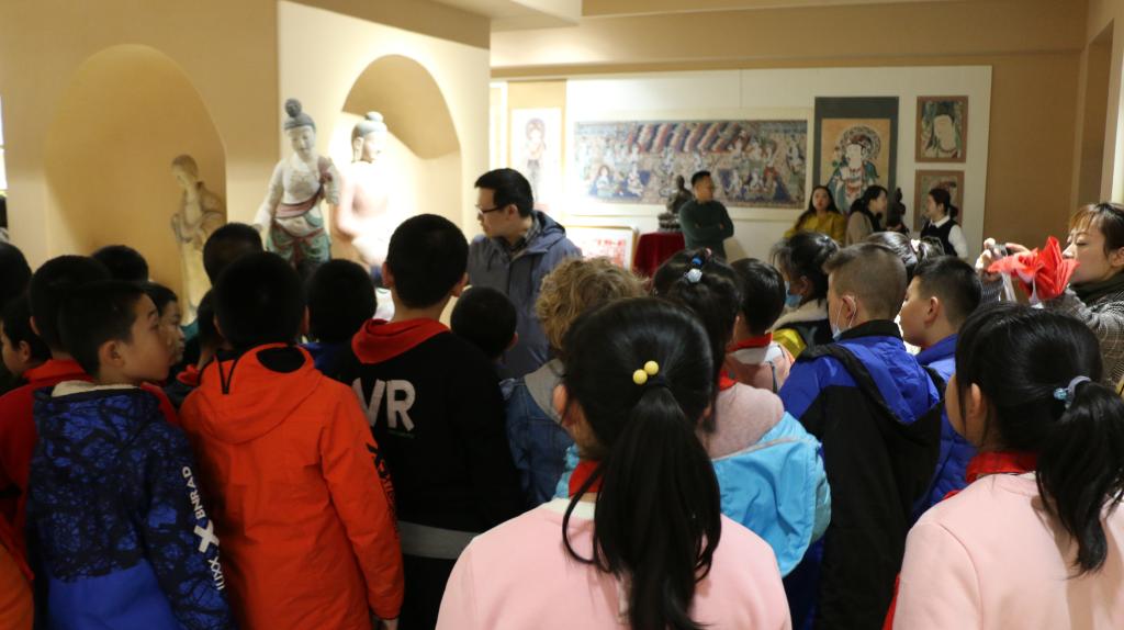 本次参观展览的班级为交大附小四年级与五年级师生,共计300余人。学院敦煌彩塑传承基地的老师为前来观展的师生进行讲解。