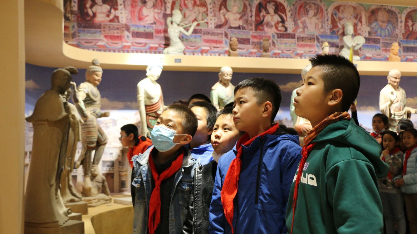 活动中,讲解教师从彩塑的发展历史、制作技艺、趣味知识与传承创新几方面引导孩子们参观讨论。通过观看视频短片与聆听讲解,孩子们开阔视野的同时,了解了灿烂的敦煌文化,达到了弘扬中华优秀传统文化、践行非遗传承的目的。